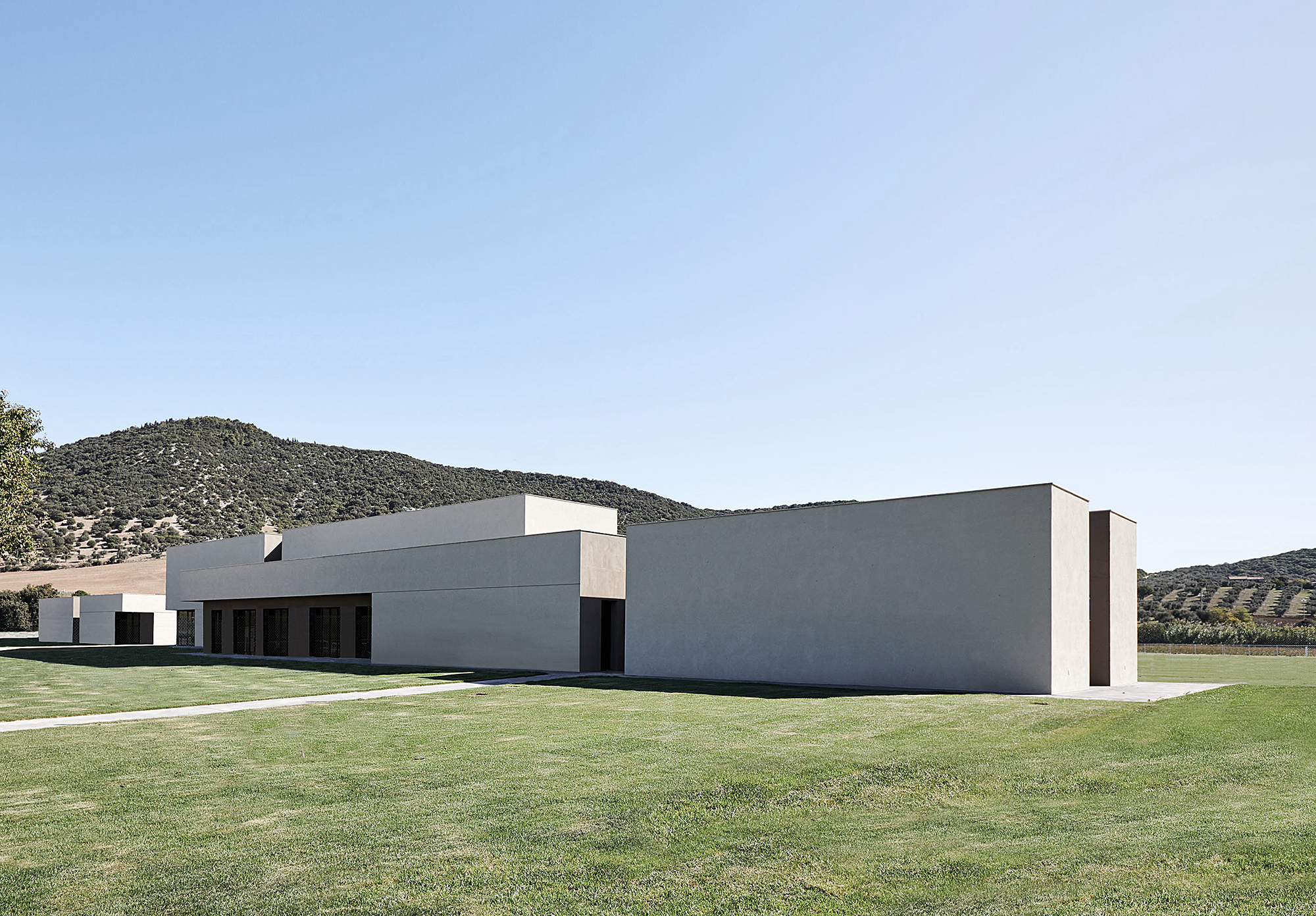 Il nuovo centro sportivo dell’U.S. Grosseto 1912 sorge nella frazione di Roselle alle pendici delle colline che ospitano le rovine dell’antica città etrusco-romana. I corpi di fabbrica si dispongono parallelamente all’andamento dei campi coltivati che fino dai tempi dalla bonifica disegnano la pianura maremmana come un mosaico. Il complesso si configura in un corpo allungato: un volume stereometrico scolpito in blocchi di altezze diverse e segnato da alcuni scavi profondi che accolgono tutte le aperture e gli ingressi alle funzioni principali. Le superfici continue e chiuse sono tinteggiate di un intonaco chiaro che si contrappone ai toni scuri e terrosi che colorano le parti scavate, con un rimando al chiaroscuro delle pareti di pietra delle cave circostanti. Il programma prevedeva la realizzazione degli uffici della società sportiva, una piccola foresteria con le camere per ospitare gli atleti del settore giovanile oltre che un centro medico, un punto ristoro e gli spogliatoi a servizio dei due campi da gioco.